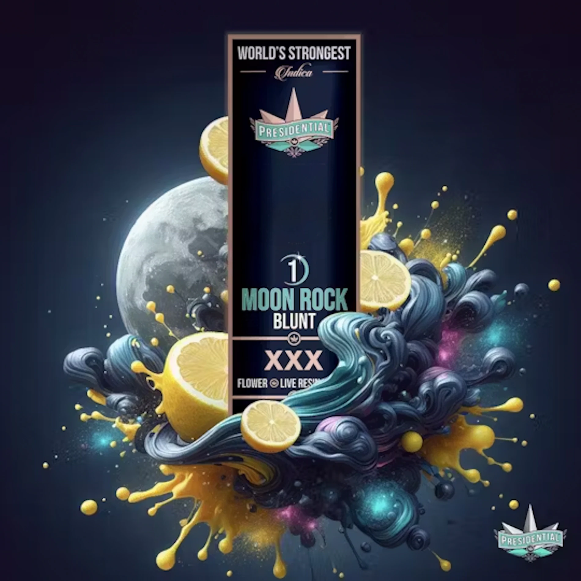 Your Presidential Blunt consists of estate grown cannabis infused with the highest quality Live Resin extract. the slowest burning, most potent Moon Rocks on the market. Ground and rolled for your enjoyment.